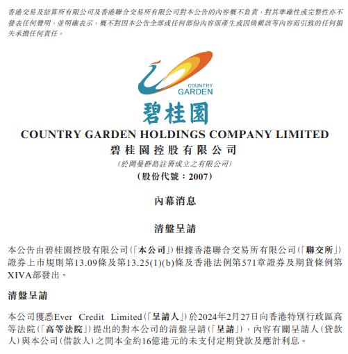 It is worth noting that this is not the first extension of Country Garden. On February 28th this year, the company announced that the petitioner Ever Credit Limited filed a liquidation petition with the High Court of the Hong Kong Special Administrative Region on February 27th, concerning the unpaid term loan with a principal of about HK$ 1.6 billion and accrued interest between the petitioner and the company. Country Garden said that it would strongly oppose the liquidation petition.