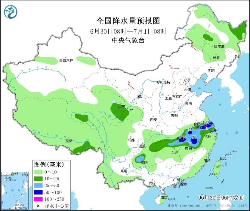 Today, there are heavy rains in parts of eastern and southern Hubei, central and southern Anhui, southern Jiangsu, northern Shanghai, northwestern Zhejiang, northeastern Hunan, northwestern Jiangxi and northwestern Guizhou, and heavy rains (100 ~ 180 mm) in southeastern Hubei, and some areas are accompanied by strong convective weather such as short-term heavy precipitation and thunderstorms.