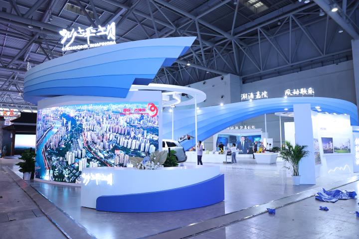 The exhibition hall of Shapingba District is located atNo. A03, Hall N8, Chongqing Guobo Center, with an area of 468 square meters. According to reports, this year’s exhibition hall design in Shapingba District is based on the theme of "tidal Jialing, wind-driven songs and music". The facade of the exhibition hall is modeled by waves and streamers, which is simple and atmospheric as a whole, which not only fits the theme, but also implies that Shapingba District will develop in a surging trend.