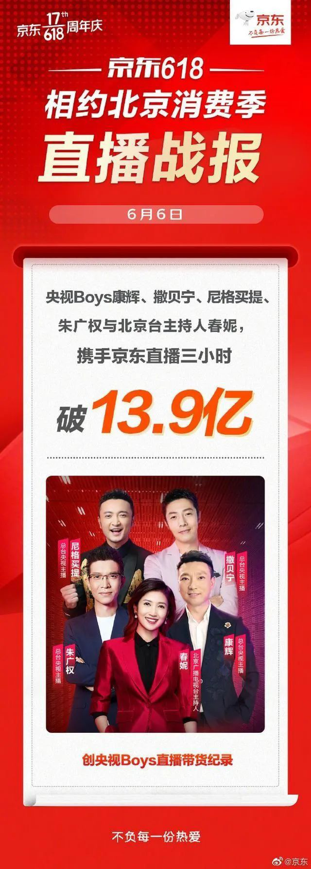 As early as the first live broadcast of this charity action, CCTV host Zhu Guangquan and Li Jiaqi recommended more than a dozen agricultural and sideline products to be sold in Hubei to netizens, including Regan Noodles, Honghu Lotus Root Soup and Yulu Tea. The cumulative number of live broadcasts was 120 million, and the cumulative sales amounted to 40.14 million yuan. The reading volume of Weibo’s topic "Zhu Guangquan Li Jiaqi Live" exceeded 330 million, and it continued to dominate the list for more than 4 hours.