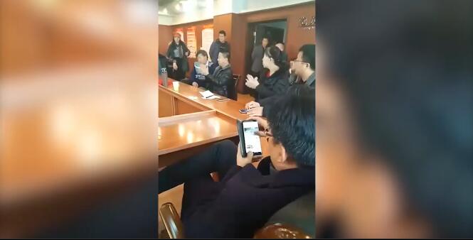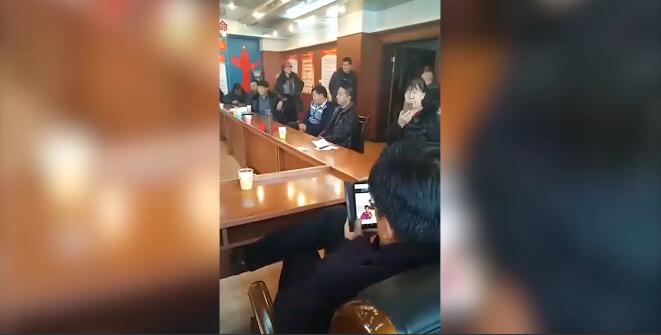 As can be seen from the video footage, in a conference room full of visiting people, a man with glasses with his back to the camera is leaning on the seat, crossing his legs at will and sliding the screen of the mobile phone quickly. Rolling information and pictures are constantly displayed on the screen, among which several photos of female characters can be clearly seen. At the same time, a member of the public was reflecting the non-compliance of land acquisition procedures, and his voice was loud, and his speech was applauded by other people in the meeting room.