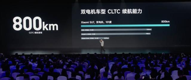 Lei Jun introduced the battery life of Xiaomi SU7 — — CLTC mileage is 800 kilometers.