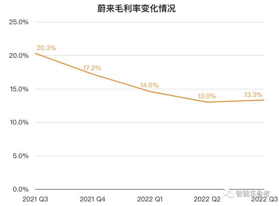 In the third quarter of 2022, NIO’s gross margin was 13.3%, compared to 20.3% in the third quarter of 2021 and 13.0% in the second quarter of 2022.