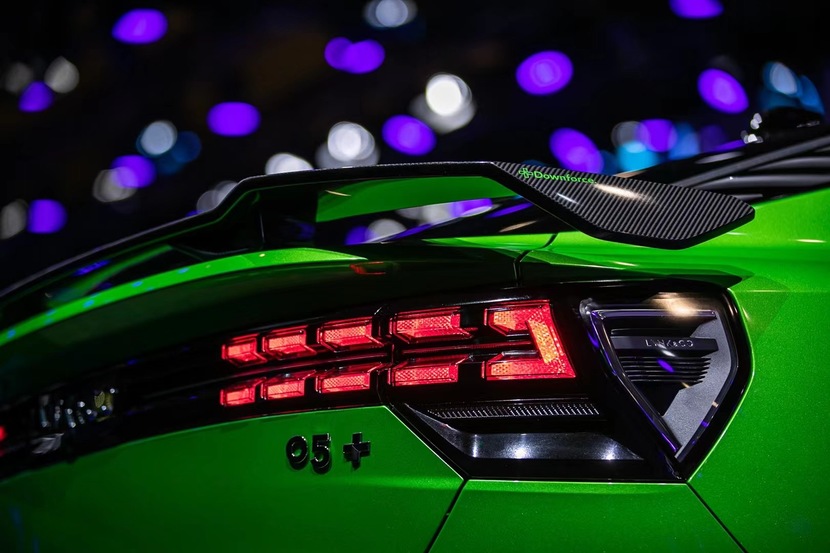 In terms of the rear, the blackened taillights, carbon fiber rear wings, and bilateral exhaust also set off a strong sporty atmosphere. It is worth mentioning that the new car also offers two rear wing styles to choose from, namely a small ducktail spoiler and a fixed-wing large-size spoiler. In terms of body color, Lynk & Co 05 + adopts a very eye-catching "forgive green" coating, which is officially called "black and green combat suit".