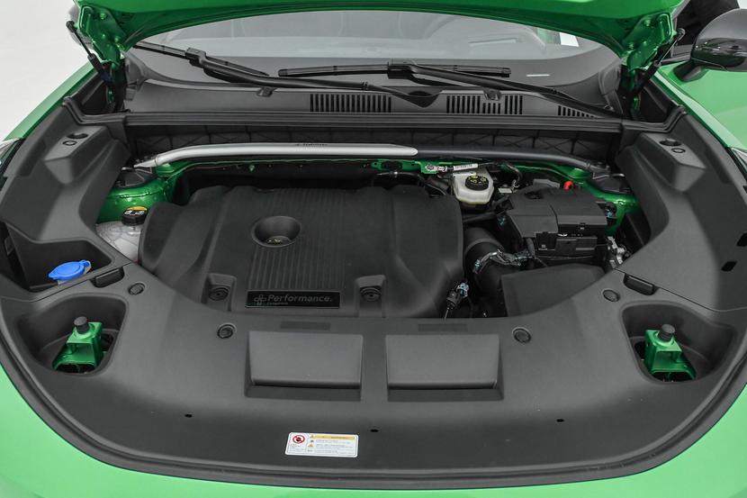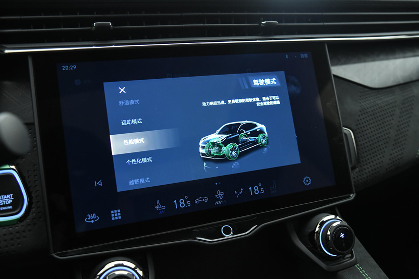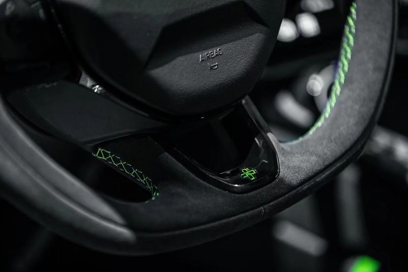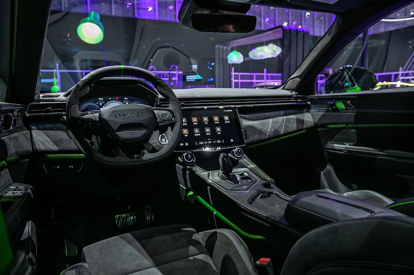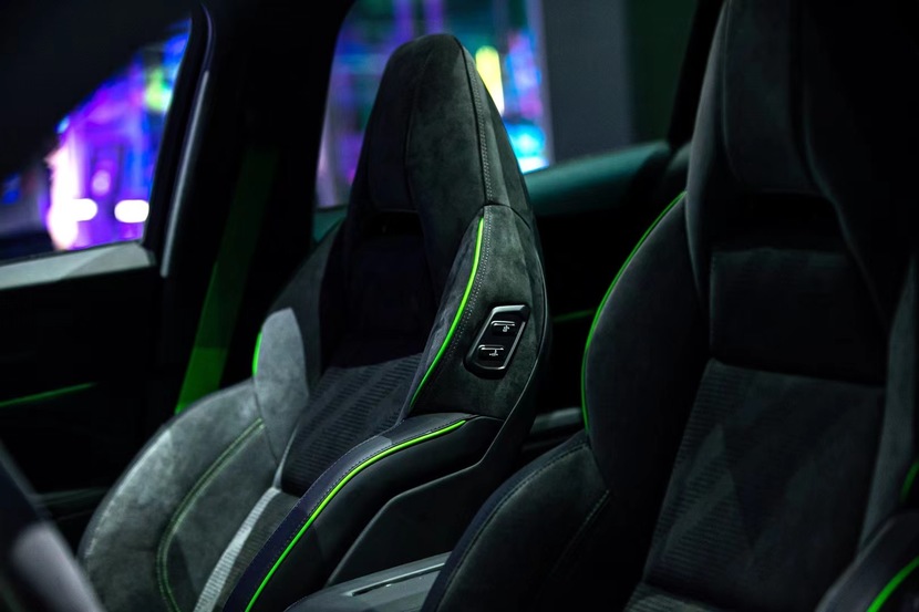 The interior layout is not much different from Lynk & Co 05, but it is covered with a large amount of Alcantara material. The seats and steering wheels are made of Alcantara flip fur + NAPPA leather. The seams, seat belts and other details are also embellished with green elements of the same color as the body. The sports atmosphere of the entire cockpit is extremely strong. In addition, the 12.3-inch smart LCD instrument, 12.7-inch central touch, and full-color HUD head-up display also bring a good sense of technology.