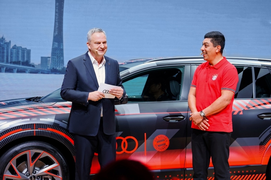 Under the spotlight, the special livery version of the Audi Q5 e-tron "Bayern Munich" is very eye-catching. The deep black base, with red short lines extending from the hood to the roof, depicts the timeline pattern of the cooperation between the Audi brand and Bayern Munich. This year is the 21st year that the Audi brand has joined hands with the Bayern Munich football team. Giovane Elber, a legendary star from the top German football club Bayern Munich, attended the press conference. Dr. Wen Zeyue, President of Audi China, told the guests about the common pursuit of both parties: "In more than 20 years of cooperation, the partnership between Audi and Bayern Munich Football Club symbolizes unprecedented progress, passion and excellence. With a strong luxury DNA, Audi is firmly committed to building an electric future for customers and brand supporters in China. "