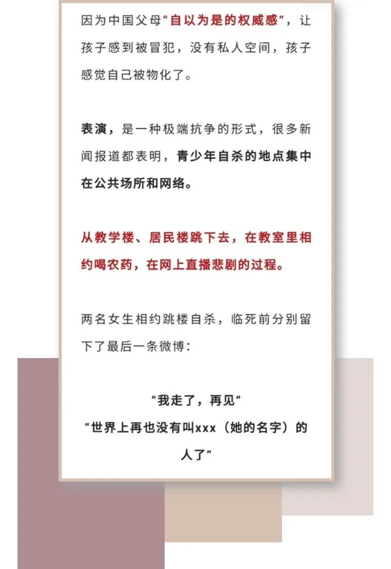 According to the data released by the Children’s Development Center of Beijing Medical University, there are more than 100,000 suicides among children, adolescents and college students every year in China.