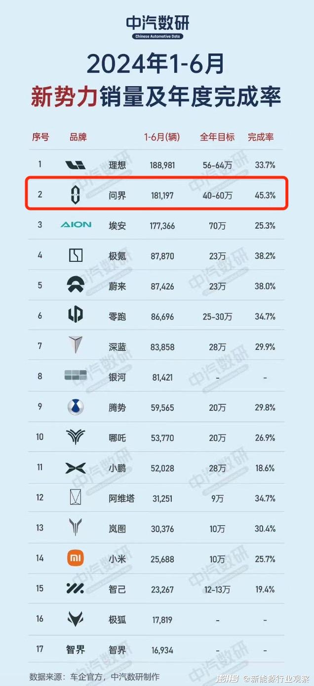 For example, as a "new generation player", Wen Jie can dominate the sales list of new forces in the first six months of 2024 with a cumulative sales of over 180,000 vehicles, which is inseparable from its outstanding performance in intelligent driving.