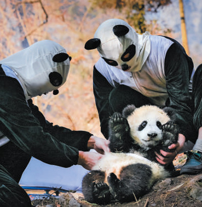 In order to avoid the "imprinting behavior" of giant panda cubs, it is necessary to minimize the influence of human activities. "Every time the mother panda is fed with food, the breeder will wear ‘ Panda suit ’ To avoid the dependence of young children on humans. " Zhang Dalei said that pandas should avoid rather than approach actively as soon as they perceive human beings, so that they can return to the jungle smoothly.