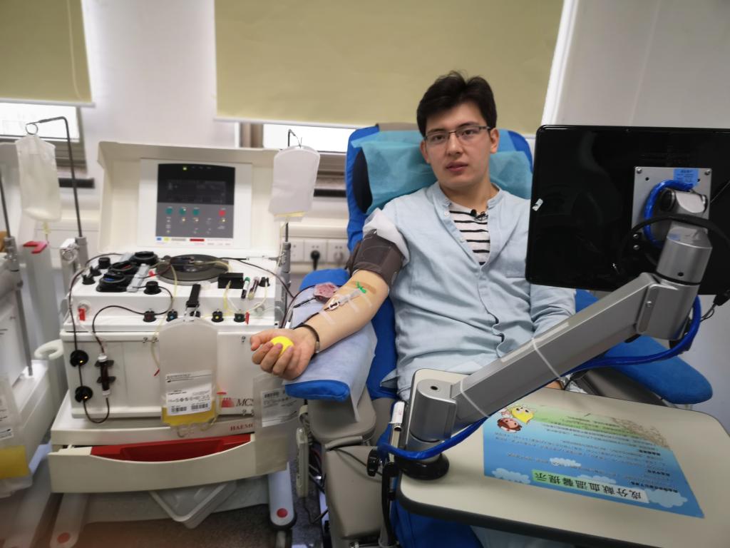 Ruslan donates blood at the Beijing Red Cross Blood Institute (photo taken on May 22, 2018). Xinhua News Agency