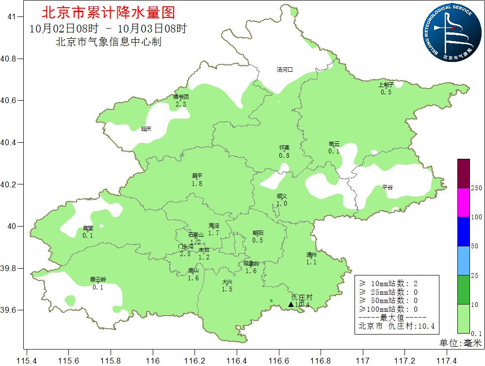 According to the Municipal Meteorological Observatory, the precipitation (mm) from 08: 00 on the 2nd to 08: 00 on the 3rd is 1.2 in the whole city, 1.3 in the urban area (North Korea, Shanghai, Fengfeng, Shijiazhuang, East and West), 3.0 in the southeast (Shanghai, Dalian), 1.0 in the southwest (gate and house), 0.8 in the northwest (Yanchang) and 0.8 in the northeast (Dense).