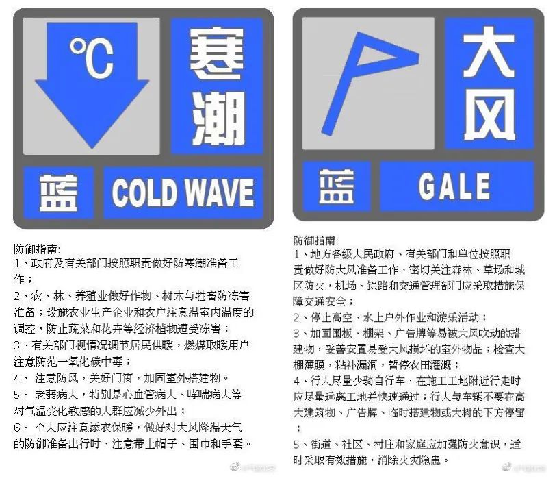 1. In the blue warning of cold wave and strong wind, the temperature of rainy days dropped significantly compared with the previous period.