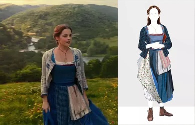The blue dress at the beginning of the movie is one of Belle’s classic styles. The film gives a good interpretation of the role of Belle through the time of the first song. Independent, fond of reading, slightly out of place with the rest of the village.