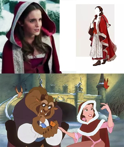 After Belle and the beast became more and more intimate in the castle, the colors of the clothes became more and more bright. What impressed me the most was the little red cloak where two people were playing in the snow.