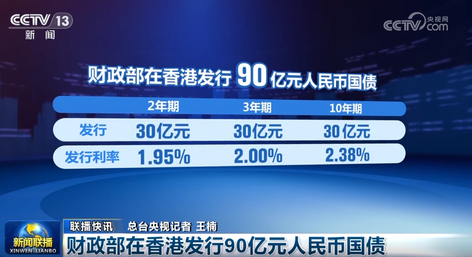 The Ministry of Finance issued 9 billion yuan of government bonds in Hong Kong.