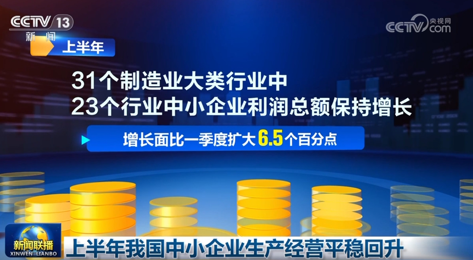 In the first half of the year, among the 31 major manufacturing industries, the total profits of small and medium-sized enterprises in 23 industries maintained growth, with an increase of 6.5 percentage points over the first quarter. The equipment manufacturing industry and consumer goods manufacturing industry increased by 5.0% and 11.4% respectively year-on-year, and the growth rate was further accelerated compared with the first quarter.