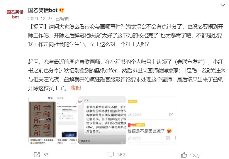 As the Spring Festival is approaching, B Tour will make some peripheral products as usual. Painters of Spring Festival couplets around Love and Love claimed their works on other social platforms. Someone went through her past account and found that this painter should be Qiu Zhao who just got the offer of folding paper. She paid attention to the "Light Night" and didn’t pay attention to "Love and Love".More importantly, she is a fan of a certain male star.